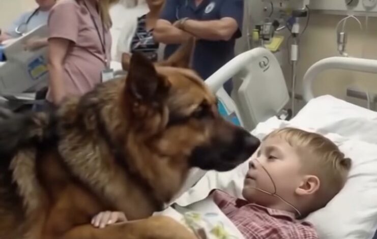 When Tommy saw him, everything changed. He smiled — really smiled — for the first time in weeks. The room, once filled with fear, now felt warm and alive. Tommy wrapped his arms around Archie, burying his face in soft fur, whispering secrets only a boy and his dog could share. 💛