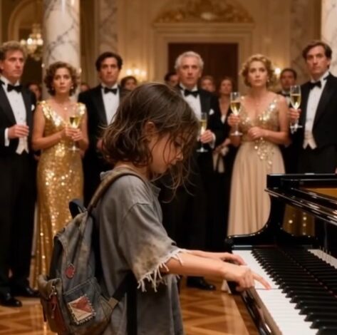 The ballroom sparkled that evening — chandeliers glowing, violins playing, and guests dressed in their finest. It was the “Voices of Tomorrow” charity gala, a night meant to celebrate promise and success. But standing quietly near the door was Lydia — a thin, barefoot girl whose eyes carried both hunger and determination. Life had not been kind to her in recent months. She had lost her home, her comfort, and the music lessons she once loved. Still, she clung to a single memory that gave her strength: the sound of her mother’s laughter as she played the piano years ago.