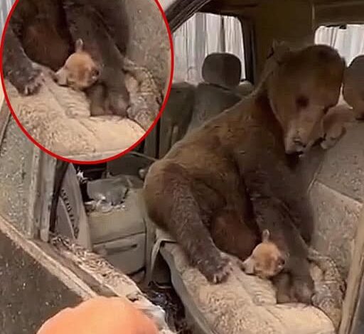 The wildfires eventually moved on. The car was cleared. The ash settled. But the image of that mother bear — sitting in silence, shielding her cub from a world on fire — became a symbol for many who heard the story.