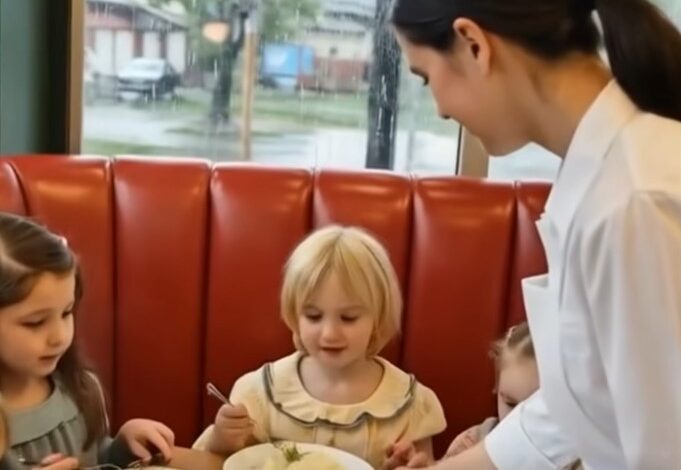 Cautious and silent, the girls stepped forward. Emily seated them in a corner booth, setting down plates of meatloaf, mashed potatoes, and green beans. Steam curled in the air. Silence fell, broken only by the quiet scrape of utensils.