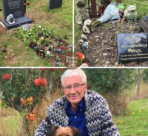 The dark grey stone is elegant and understated, yet rich with meaning. It bears the names of Paul O’Grady and Brendan Murphy, side by side, symbolizing a love that transcended time, tragedy, and the challenges of life. Atop the headstone rests a delicate figurine of Buster, Paul’s beloved dog, who was not just a pet but a constant source of joy and companionship throughout Paul’s career and personal life. Buster was a familiar face to many viewers of The Paul O’Grady Show, often appearing alongside Paul and offering a glimpse into his affectionate nature.