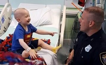 “A SURPRISE FROM AN AMERICAN SOLDIER: A CANCER STRICKEN BOY AND THE GIFT THAT CHANGED HIS LIFE” In a small town in Ohio, USA, 9-year-old Ethan was spending long days in the children’s hospital, fighting a vicious battle against cancer. Each day was a challenge: chemotherapy sessions, painful aches, sleepless nights, and the fear of seeing needles. His mother, Mrs. Linda, always held his hand during those moments, but Ethan’s eyes grew increasingly sad, as if he had lost his faith in life. One autumn morning, as Ethan woke up after a long night of chemotherapy, a knock echoed at the door. Standing before him was an American soldier in a police uniform, his smile warm yet commanding. He introduced himself as Sergeant James, a former military man now serving in the local police force, and explained that he wasn’t just here to say hello—but to bring a “very special surprise.”
