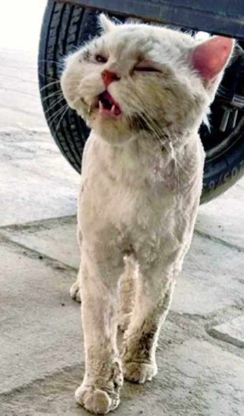 When I first saw him, he was trembling so badly that his whole body seemed to fold in on itself. Dirt clung to his fur like a second skin, and his ribs showed with every shallow breath he took. Even then, behind those half-closed eyes, there was a spark that refused to die.