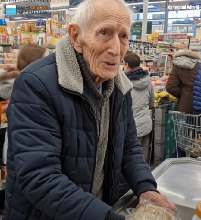 He looked small, diminished by the world around him. He was slightly hunched over, wearing a faded tweed jacket that had seen better decades—elbow patches worn thin, cuffs slightly frayed. He wore a flat cap that cast a shadow over eyes that darted nervously around the store. His hands, spotted with age and trembling slightly, placed his items on the belt with agonizing slowness.