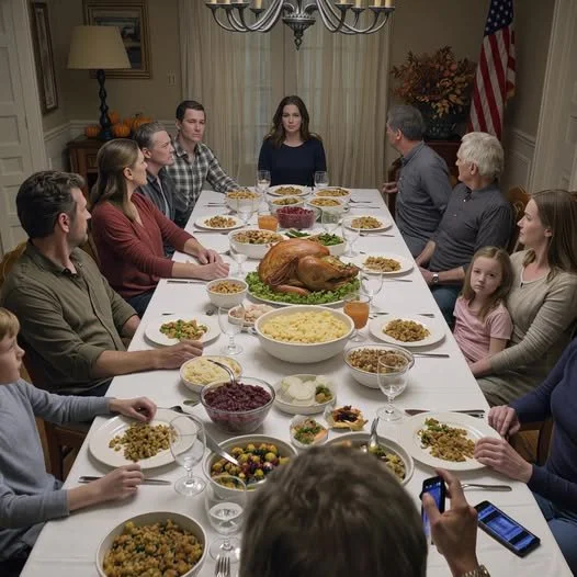 I sit at the far end, positioned like an afterthought, while my younger sister, Hannah, occupies the seat of honor beside our father. The turkey sits golden and perfect at the center, surrounded by dishes I once helped prepare but am no longer asked to touch.