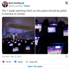 They wrote, “This guy wanted to send a message. He wants everyone on that plane to know he views himself as a superior being because he would never possibly engage in activity as lowly as watching the Super Bowl.” That comment fueled even more discussion.