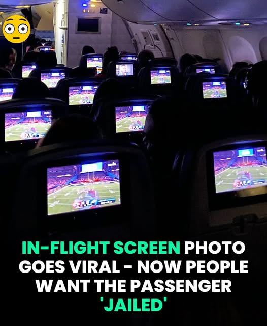 A photo taken inside a dark airplane cabin has taken on a life of its own online. People are now joking that a passenger “should be jailed” after viewers realized what he chose to watch instead of the Super Bowl.