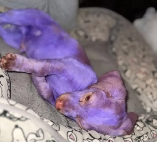 Purple Puppy With Burned Ears Finally Finds The Love He Always Deserved