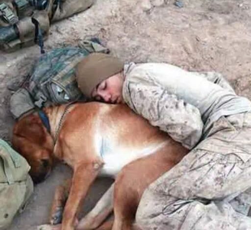 Moments later, the soldier sank to the floor, exhaustion claiming him. The dog followed instinctively, pressing close, his head resting on the man’s chest. Within minutes, the soldier was asleep — hand on his companion’s back — while the loyal dog remained perfectly still, keeping watch.