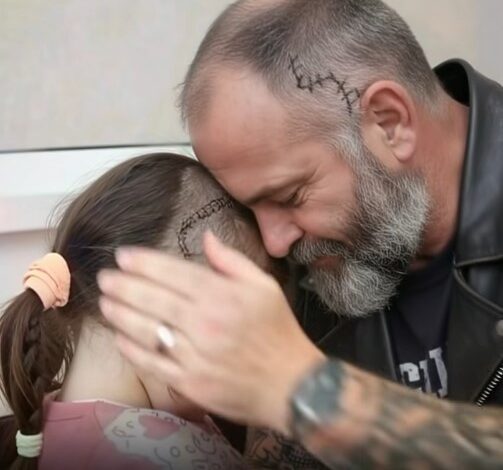 That’s when I thought of Gabriel, a retired veteran who volunteered at our hospital — a biker with tattoos, a big heart, and a quiet strength that kids instantly trusted. More importantly, he had a scar of his own — one that ran across his temple, just like Lily’s.
