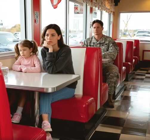 In the corner booth sat a little girl, no older than four, dressed in a pale blue dress that made her look even smaller. Across from her was a man in a gray suit, his expression cold, his attention fixed on an unmarked book. The child sat too still, her hands perfectly folded, eyes darting but never meeting his. Ethan had seen that kind of fear before — the kind that came from knowing a single mistake could mean pain.