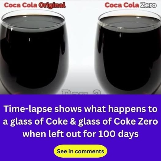 The video, created by Photo Owl Time Lapse, shows two clear glasses side by side. One has Coca-Cola Zero and Coca-Cola Original. At first, the changes are expected. The ice melts and the carbonation goes away. But into the second week, a strange bubbling begins on the surfaces. Then it blooms into spores in an almost mesmerizing way. The original coke becomes dotted with white and gray mold, with larger and fuzzer spots in the center. The spots increase until the entire surface is covered.