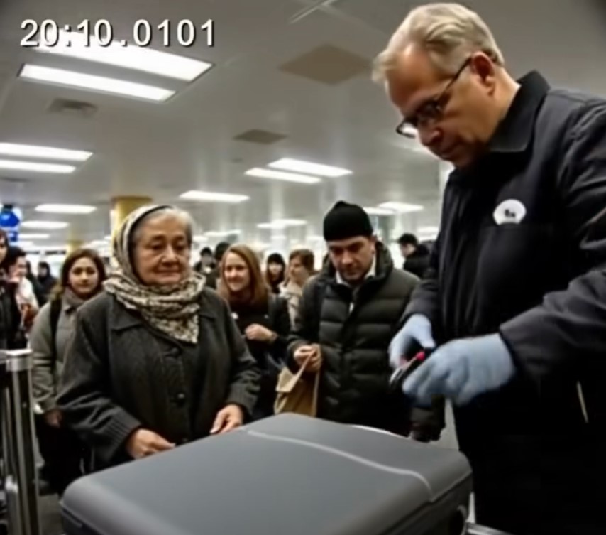 While inspecting an elderly woman’s baggage, the security officer noticed something unusual on the scanner