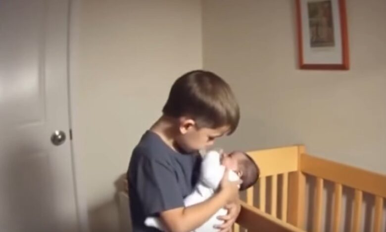 There, in the pale morning light, she found him sitting beside the crib, his small arms wrapped protectively around the baby. His face was pale but resolute, eyes filled with something far beyond his years.